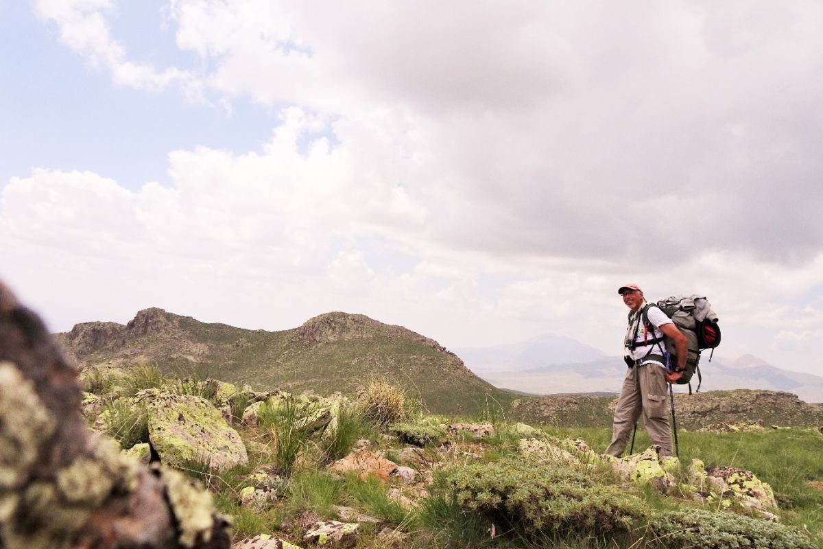 Doğuya bakıyor ve rahat bir nefes alıyorum. Buradan Gebere barajına iniş zor görünmüyor. Nitekim kısa bir müddet alçaldıktan sonra barajı uzakta altımda görüyorum. Hedef göründükten sonra rota tayini de daha kolay oluyor. Zirvenin kuzeydoğu yamaçlarında hala kar var ve bu eriyen kar, küçük dereler ve çavlanlar halinde kayalardan aşağıya akıyor. Haftalardır susuz bir coğrafyada yol alıp tırmandıktan sonra akan suyun sesi öylesine hoş ki, inişimi bir su yatağının yanından, suyun sesini dinleye dinleye sürdürüyor, fasılalarla kana kana su içiyorum. Yaklaşık iki saat sonra, Gebere barajının hemen üzerindeki yükseltiye ulaştığımda, biraz kuzeyimde, bir kayalığın üzerinde beni izleyen birini görüyorum. Altındaki çayırda da bir araç duruyor. Herhalde bir avcı diye düşünüyorum. Artık yakınına, barajin düzlüğüne indiğimde adamın bana doğru hızlı adımlarla ilerlediğini görüyorum ve sonradan yanında koşan bir köpek. “Ben bu köpeği bir yerden tanıyorum” demeye kalmadan jetonum düşüyor ve bunun “Malinki”, bana doğru yaklaşan adamın da dostum Cemal Gülas olduğunu anlıyorum. Cemal’le kucaklaşıyoruz. Hayretler içerisindeyim. Yolculuğum boyunca Cemal ile ara ara yazışmıştık ve kendisine nerede olduğum hakkında bilgi vermiştim. Bununla birlikte, bu yolculuğum sırasında koşullara göre bir çok kez planlarımı değiştirmek durumunda kalmıştım. Bugün Gebere barajına varacağımın hiç bir garantisi yoktu. Cemal’in beni burada doğanın ortasında nasıl bulduğuna şaşmamam elde değil. Hatta Gebere barajının tam üstüne inmeyip, biraz güneyinde kalan dere yatağından alçalmış olsaydım beni görmesine imkan olmayacaktı. Nitekim buradaki dere yatağından inmeyişimin yegane sebebi, burada gördüğüm sürü ve iki azman çoban köpeğiydi.