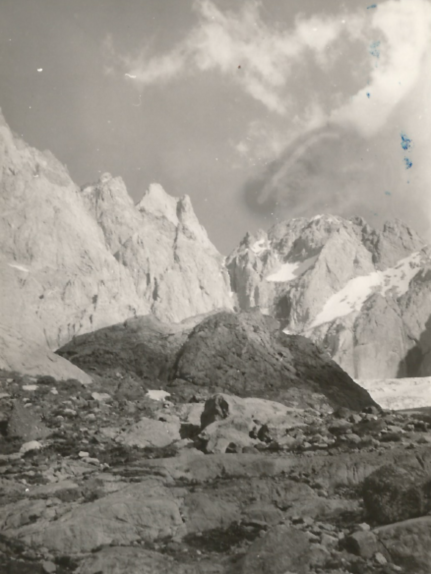 Kampta ikinci gün kısa gezinti ve ortama alışma, bazı tekniklerin eğitimi ile geçtikten sonra ertesi gün Reşko buzuluna çıkıldı. Bu buzul tepenin eteğinde bir çanakta yerleşmiş oluşum idi. Çanağa ulaşmak için yaklaşık 60 bazı yerlerde 75 derece eğimli bir buz kulvarını tırmanmak gerekiyordu. Kulvarın alt bölümlerinde eriyen buzulun sularının ıslattığı çamurlu bölgeyi geçtikten sonra kramponları takarak dört saat kadar süren bir çaba ile çanağa ulaştık. Etrafı ulu tepeler ile çevrili beyaz bir dünya içinde, tepenizde yaz güneşinin sıcaklığı, ayaklarınızın altında kim bilir kaç yüzyılların birikimi buz kütlesi, ıssızlık... İşte gerek zirveye ulaşmak gerek bir kaya duvarını tırmanmak veya böyle ender ulaşılan bir ortamda kendinizi bulmak. Bu haz, dünyevi değerler ile ölçülemez inancındayım. Buna ek olarak bir de buzul arasında bir çukurlukta başparmak boyutunda gök mavisi bir çiçeği görmek, mutlulukların en büyüğü idi. Neden bu çiçeğin resmini çekmediğime hala şaşmakla beraber, şimdilerde yoksa hayal mi ediyorum diye düşünmüyor da değilim.
